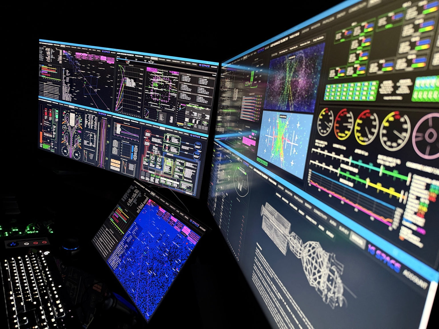 The AURAI console exposes the operational state of the spacecraft’s autonomous control system. Telemetry covers AI hardware load, memory utilization, inter-core communication and consensus behavior, decision throughput by priority class, and health indicators for long-duration autonomous operation under increasing isolation and latency.